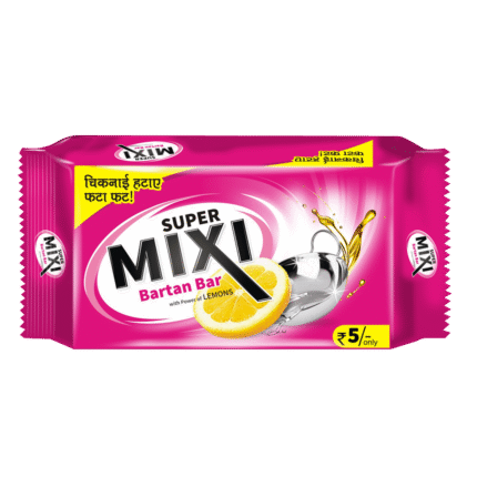 Super Mixi Dishwash Bar – 140g is crafted to effectively remove grease, oil, and food stains while being gentle on your hands. It ensures sparkling clean utensils with every wash, making kitchen cleaning simple and hassle-free.