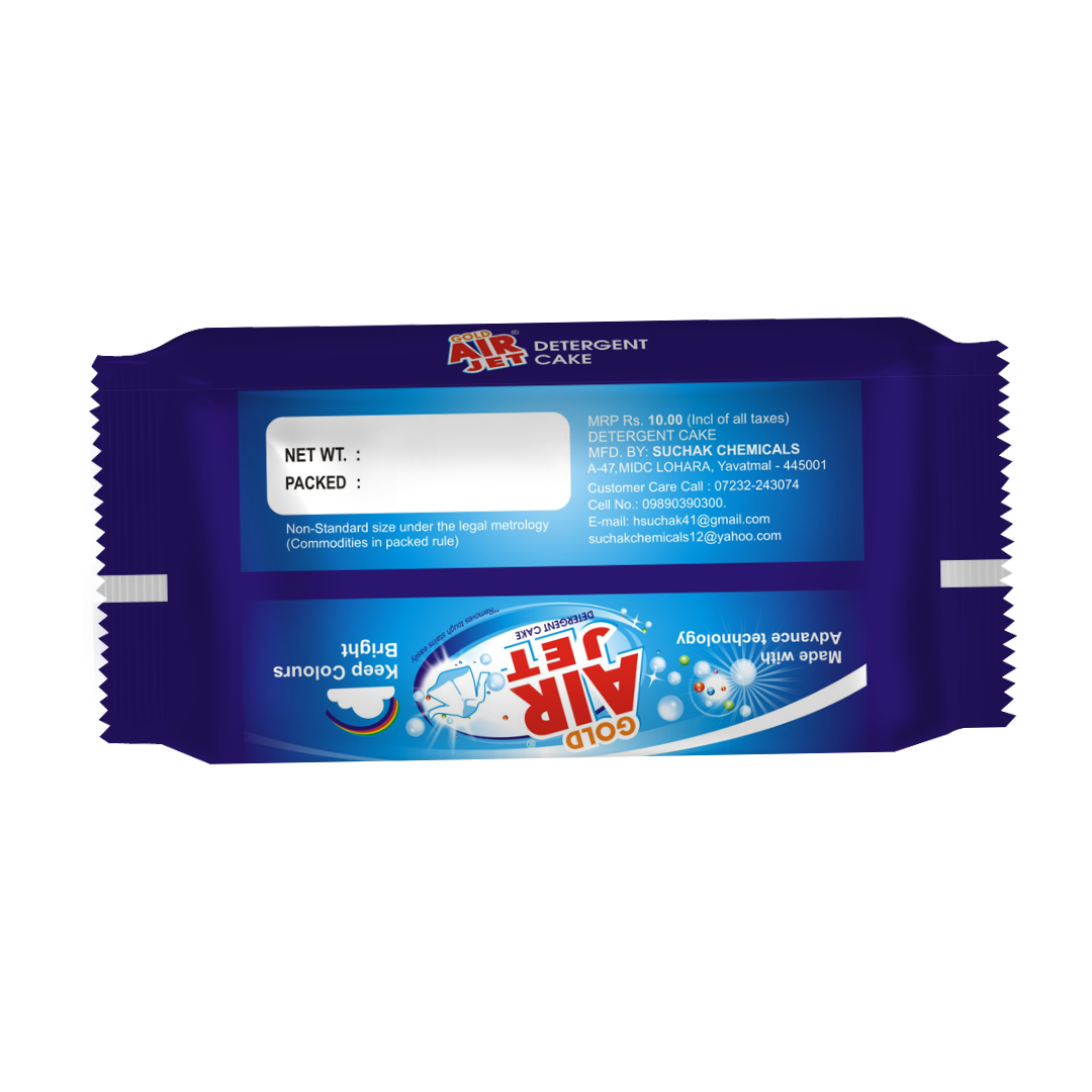 Air Jet Detergent Cake & Bar – 90g | Tough on Stains | Gentle on Fabric | Long-Lasting Freshness ₹6.00 Original price was: ₹6.00.₹5.00Current price is: ₹5.00.