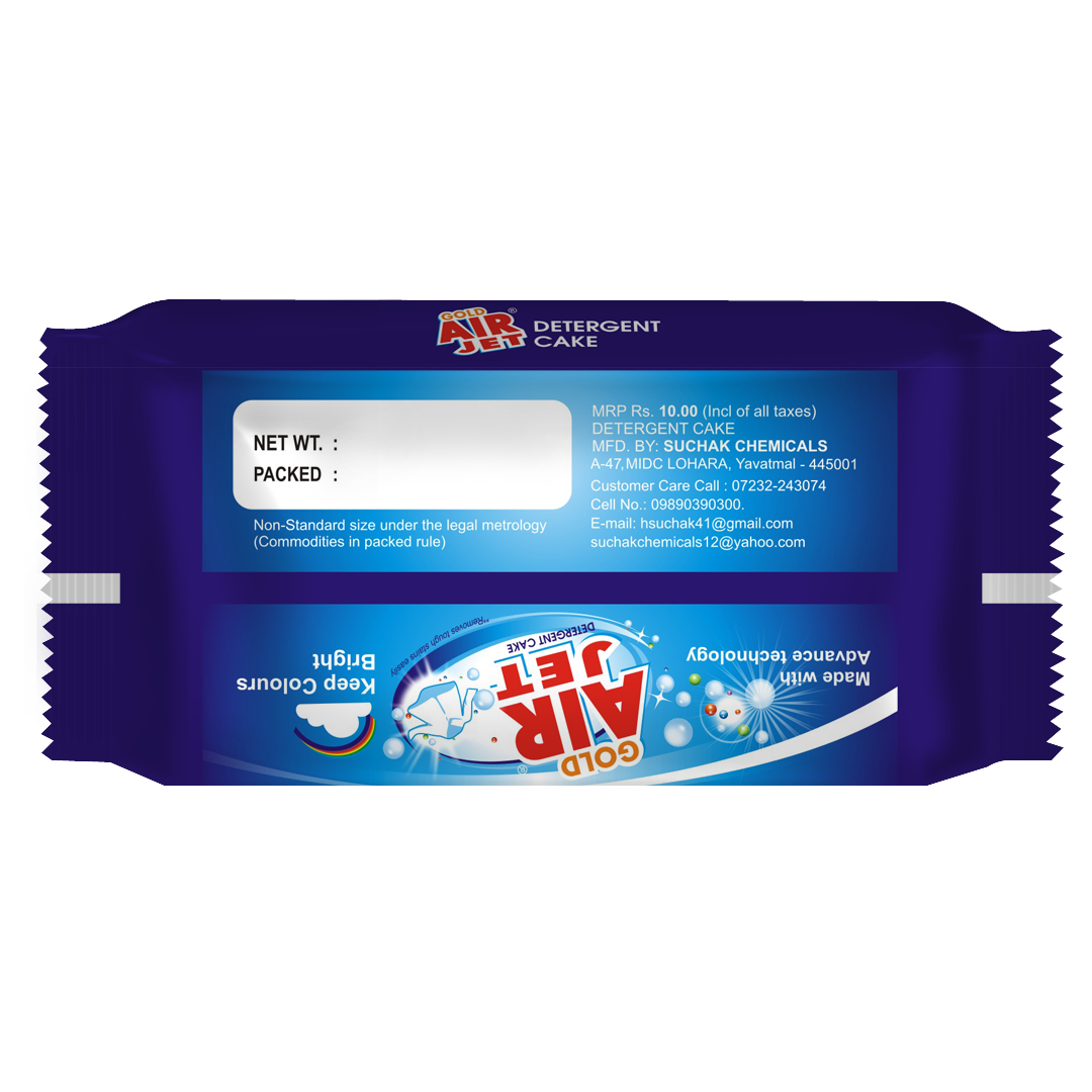 Air Jet Detergent Cake & Bar – 90g is specially crafted for effective stain removal and daily laundry needs. It removes tough stains like curry, oil, and mud while being gentle on fabrics and hands. Leaves clothes bright, fresh, and clean after every wash.