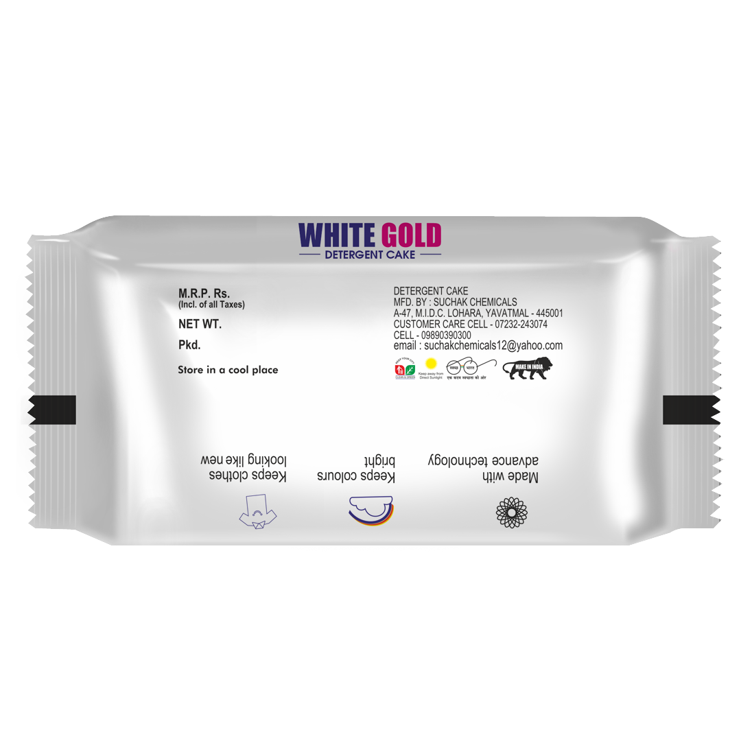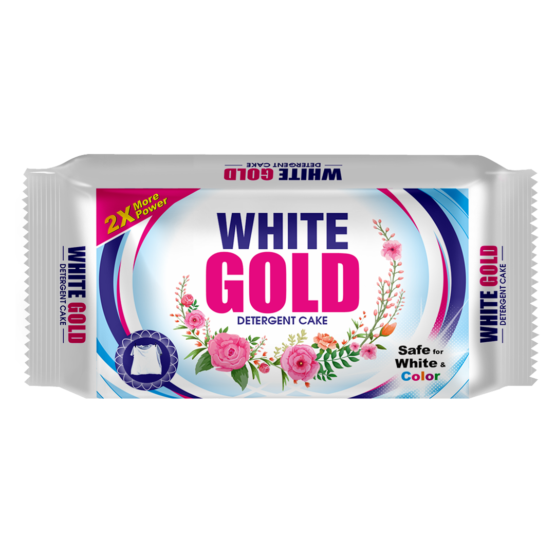 White Gold Detergent Cake – 140g is specially formulated to remove stubborn stains like oil, tea, and mud while being gentle on fabrics. It keeps clothes bright, soft, and fresh, ensuring effective cleaning for everyday laundry.