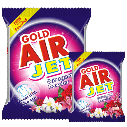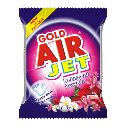 Gold Air Jet Detergent Powder – 125g offers effective stain removal and lasting freshness in a compact pack. Specially designed for daily laundry needs, it removes stains like curry, tea, oil, and mud, while keeping clothes soft, bright, and fresh with its gentle formula.